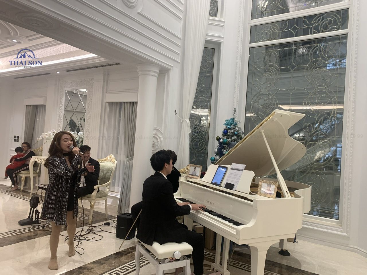 Sảnh rộng là nơi thể hiện đam mê âm nhạc của gia chủ cùng các vị khách quý.