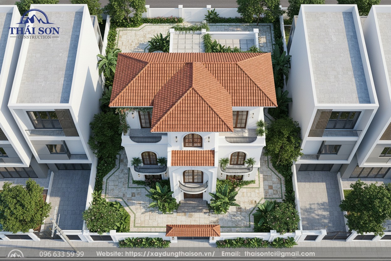 Biệt thự Địa Trung Hải 3 tầng ngói đỏ mặt tiền 12m – Thiết kế tối ưu – Thi công chuẩn – Không gian sống khác biệt