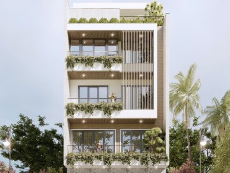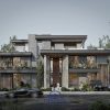 Hệ thống cửa kính rộng mở không chỉ giúp lấy trọn ánh sáng tự nhiên, mà còn tạo sự kết nối liền mạch giữa không gian nội thất và cảnh quan bên ngoài. Những ban công xanh tầng tầng lớp lớp không chỉ mang tính thẩm mỹ, mà còn là “lá phổi nhỏ” giúp điều hòa không khí, mang lại cảm giác trong lành, dễ chịu cho gia chủ. Phần mái ốp gỗ sang trọng cùng các lam chắn nắng tinh tế góp phần hoàn thiện vẻ đẹp hiện đại, đồng thời nâng cao công năng sử dụng.