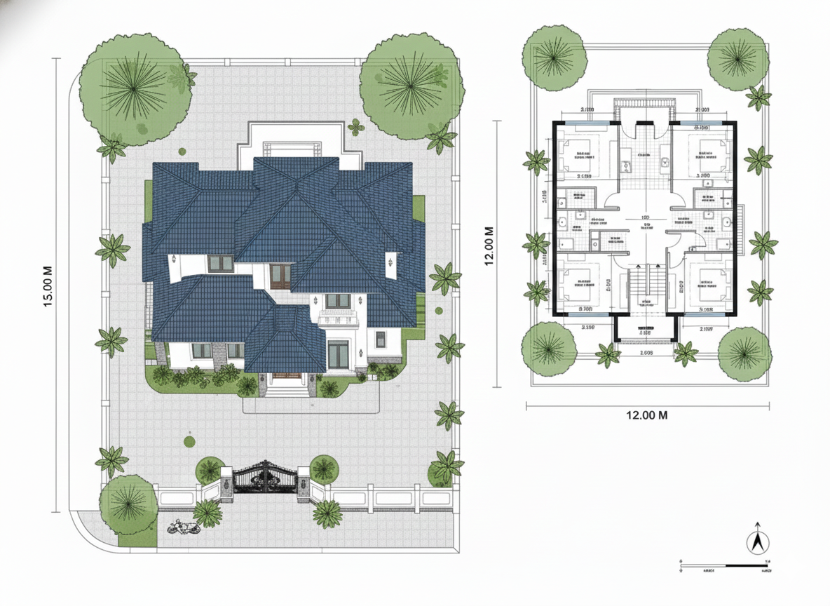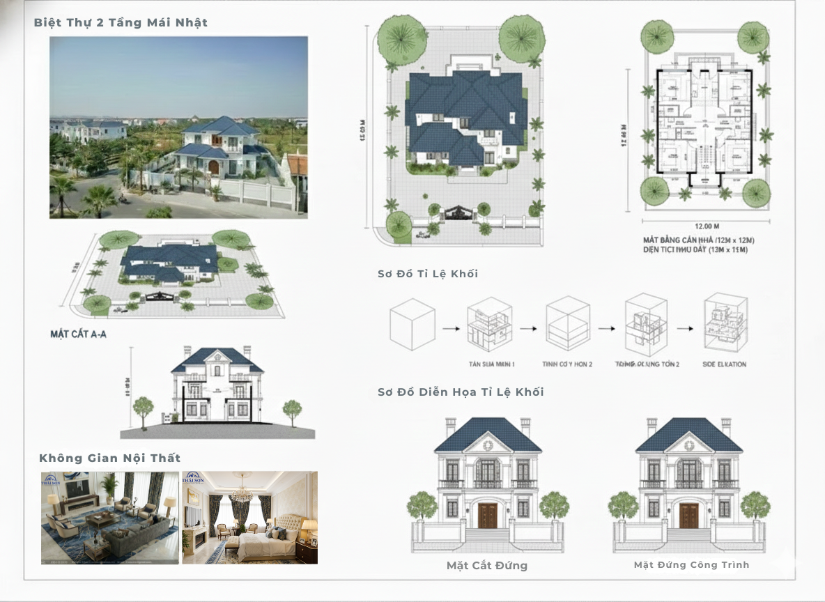 BIỆT THỰ MÁI NHẬT 2 TẦNG 15mx25m