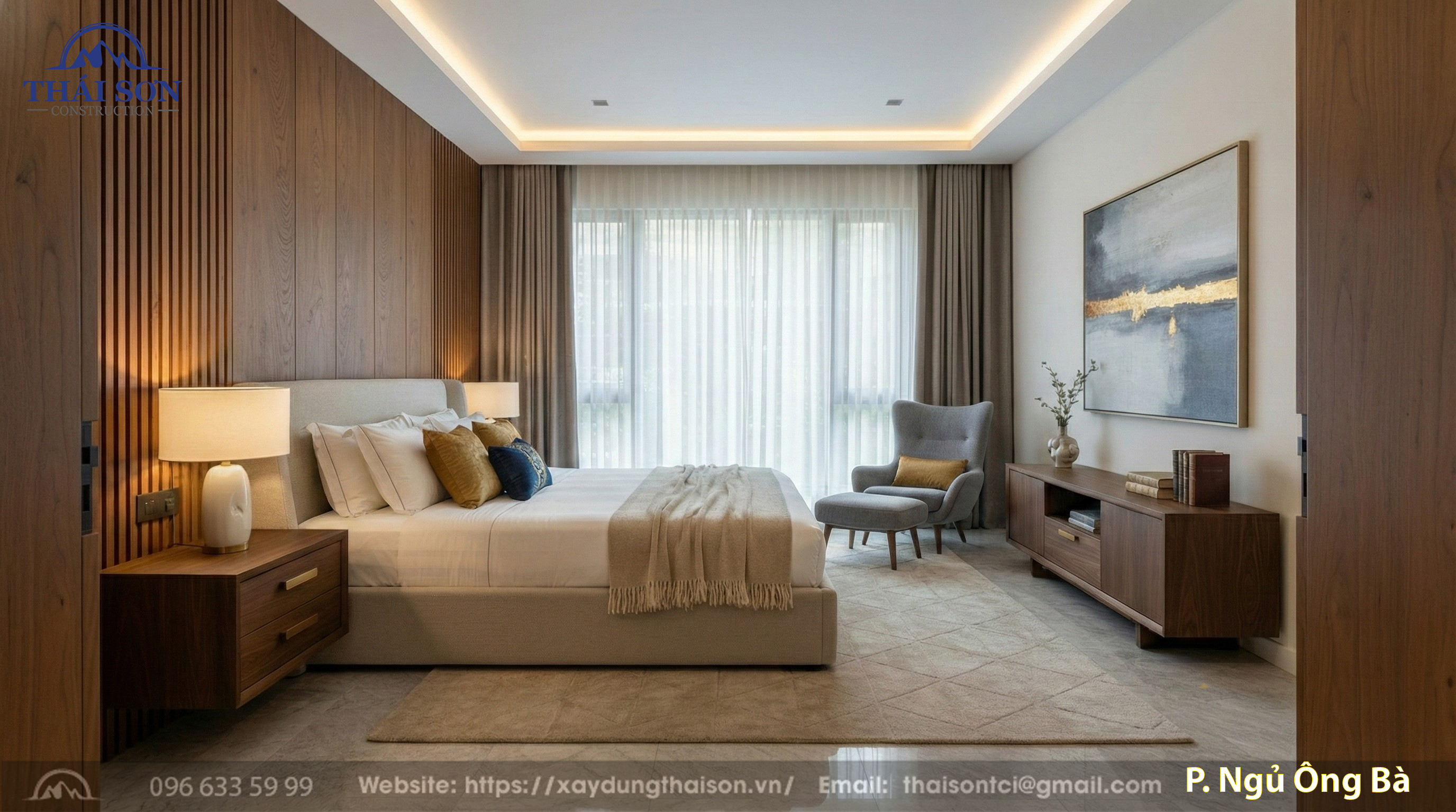 - Phòng ngủ ông bà tiện lợi, đảm bảo an toàn và sự thoải mái