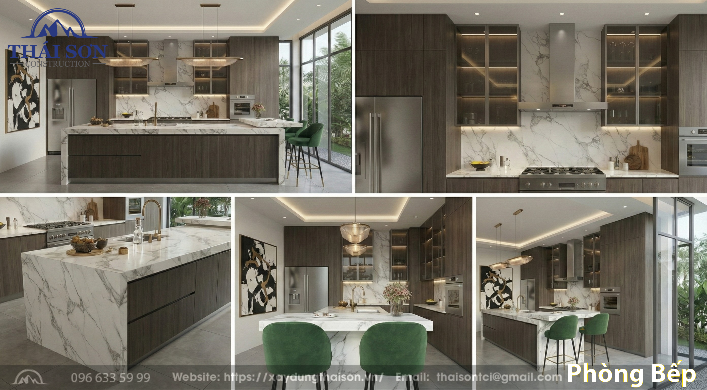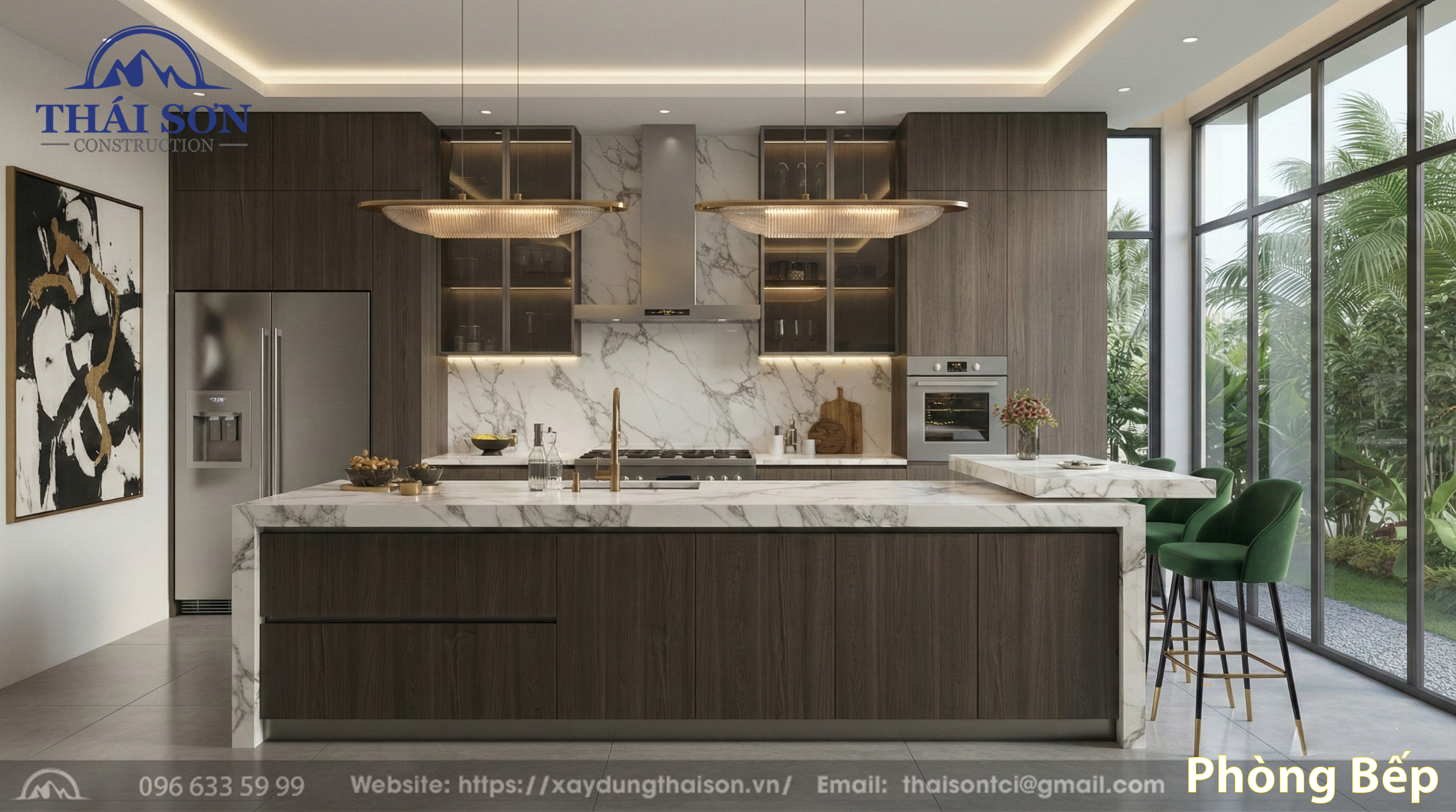 - Phòng bếp + phòng ăn liền mạch, thoáng rộng