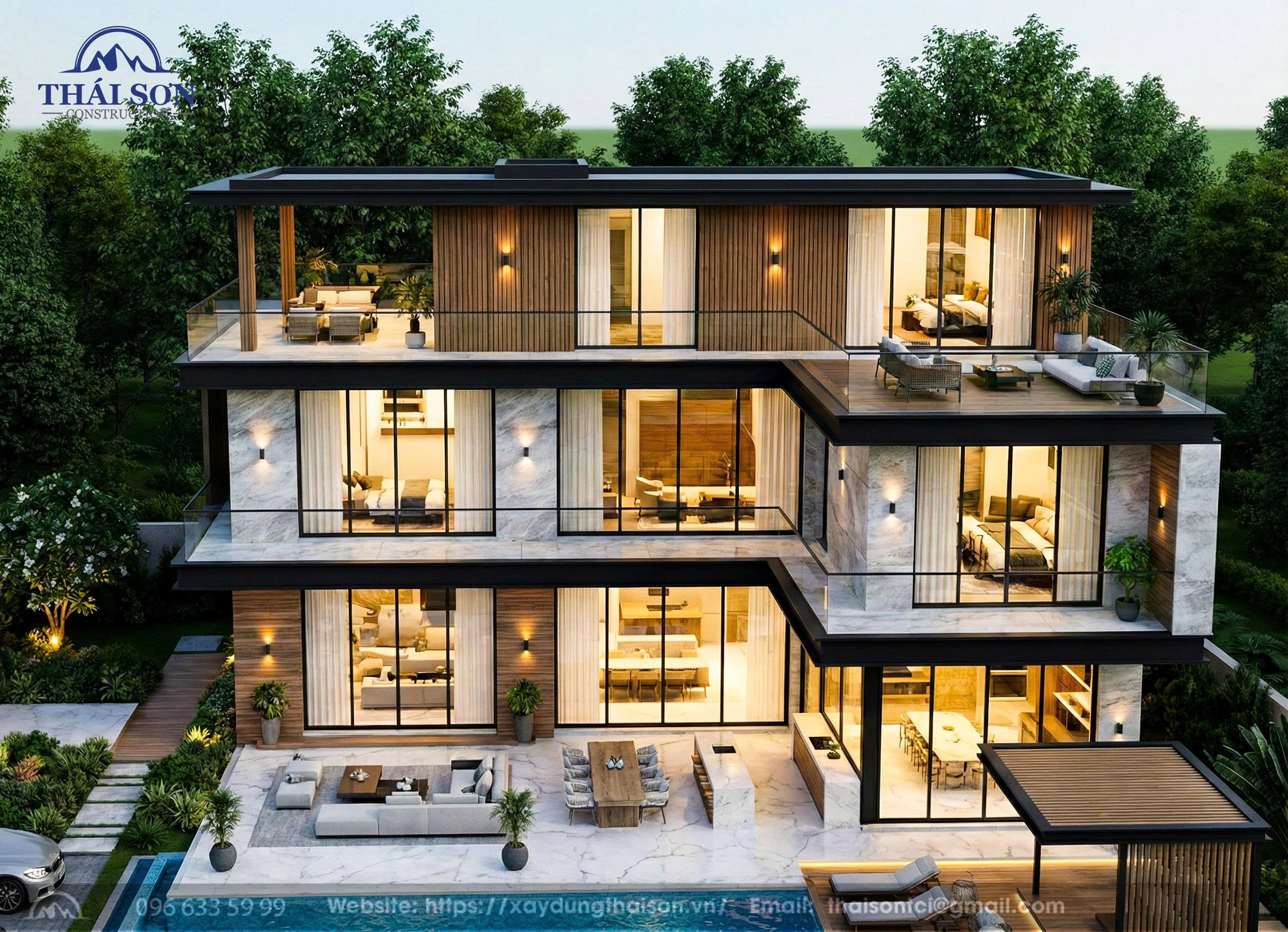 Mẫu biệt thự nghỉ dưỡng 3 tầng có gara, hồ bơi và sân vườn do Công ty Xây dựng Thái Sơn thiết kế không chỉ là nơi để ở, mà còn là không gian tận hưởng cuộc sống đúng nghĩa. Đây chắc chắn sẽ là tổ ấm lý tưởng cho những gia đình yêu thích sự tiện nghi, sang trọng và gần gũi thiên nhiên.