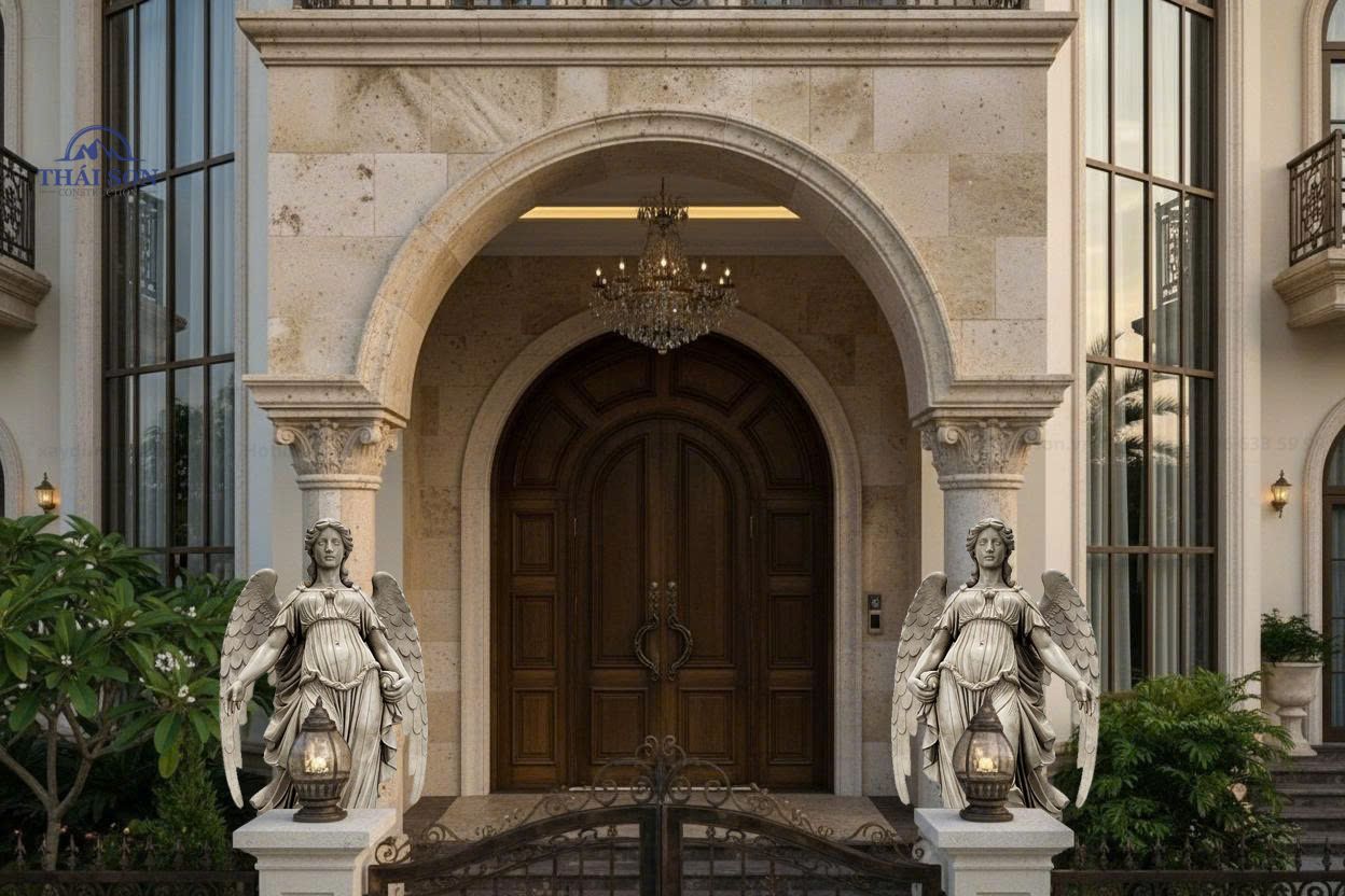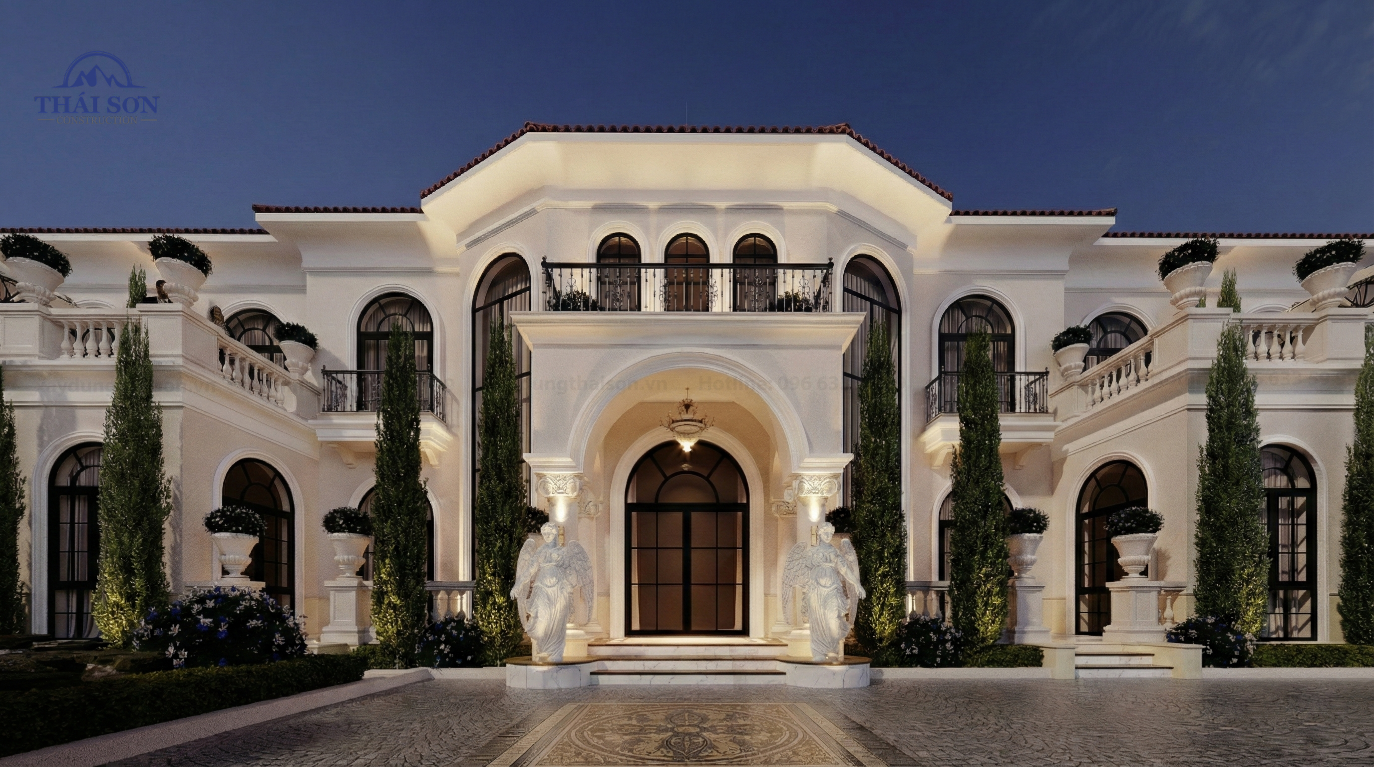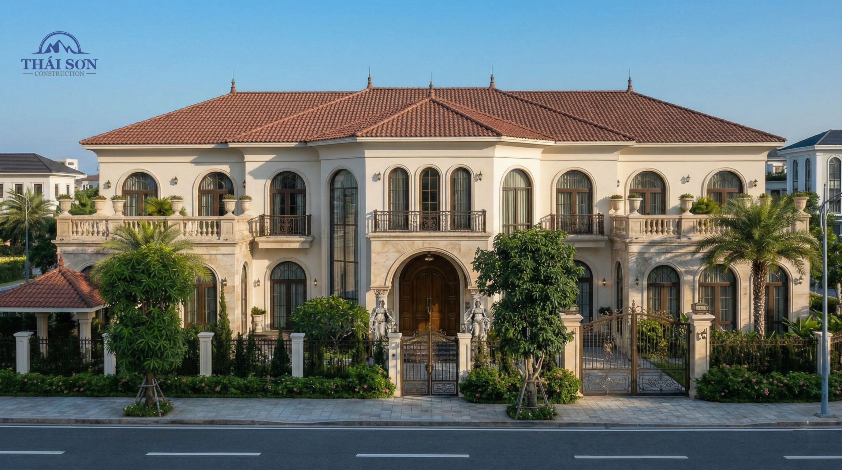 Biệt thự tân cổ điển 2 tầng mái ngói đỏ – Kiến trúc sang trọng kết hợp yếu tố tôn giáo
