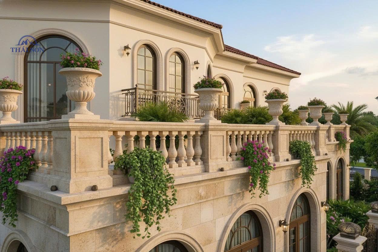 • Hệ cột lớn, vòm cong, ban công cân đối