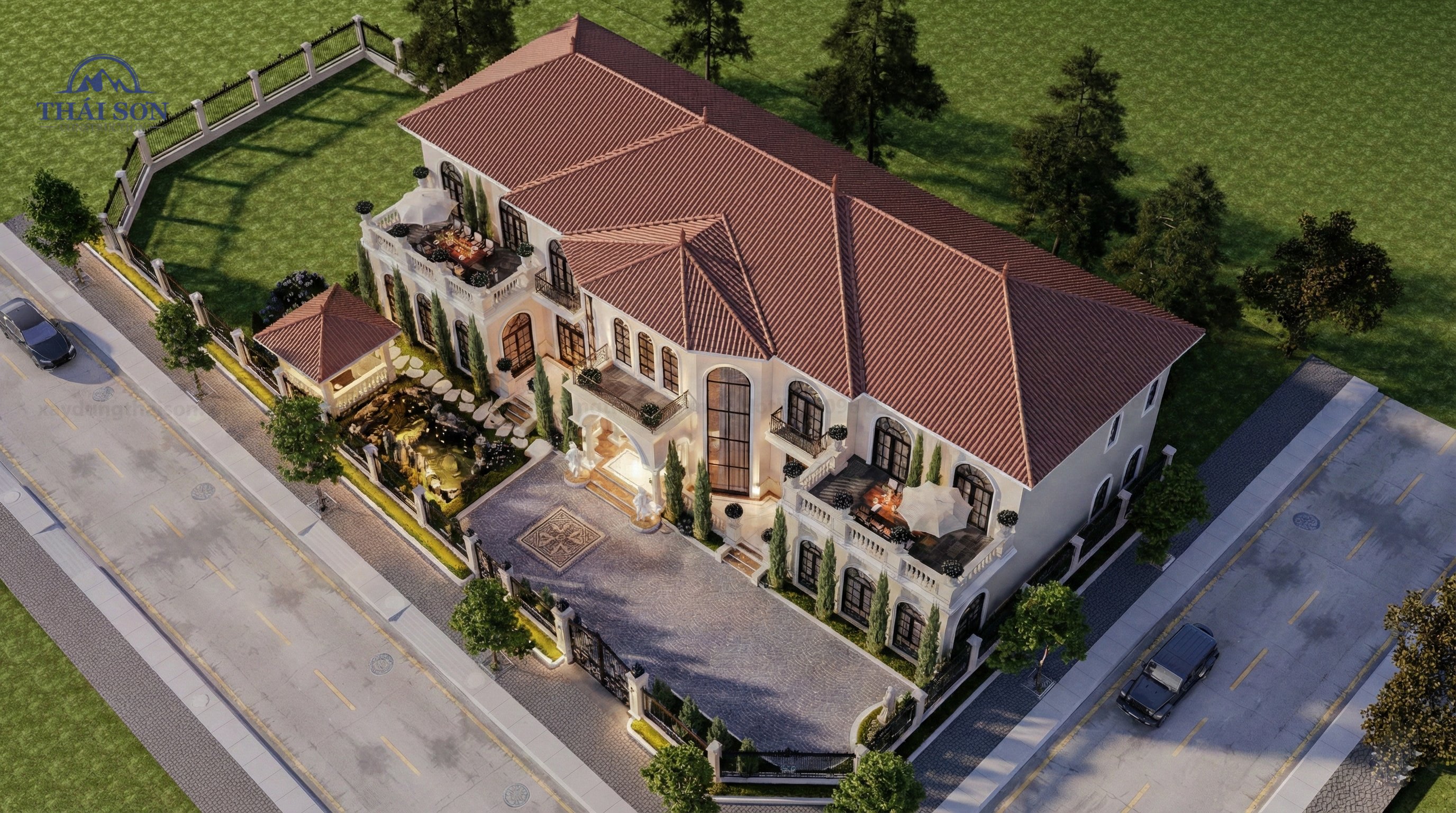Đó là lý do công trình được Thái Sơn định hướng theo biệt thự tân cổ điển 2 tầng mái ngói đỏ, kết hợp tinh tế giữa kiến trúc châu Âu và ý đồ không gian riêng của gia chủ.