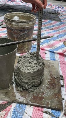Tại Công ty Xây dựng Thái Sơn, mọi khâu từ lấy mẫu, kiểm tra độ sụt, bảo dưỡng đến thử...