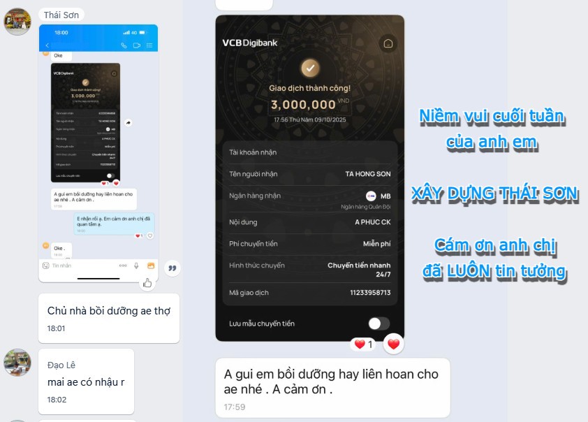 …… Và rất nhiều ý kiến từ khách hàng cho Thái Sơn, làm tốt gia chủ còn thưởng nóng bổi dưỡng cho anh em cùng cố gắng.