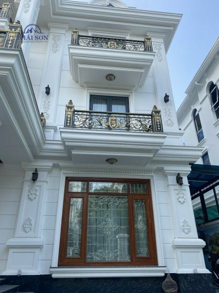 Trong quá trình thi công, căn biệt thự được kiểm soát chặt chẽ từng công đoạn. Hệ cột, phào chỉ và các mảng tường lớn được thi công cẩn thận để đảm bảo đường nét thẳng, sắc và đều. Những chi tiết tưởng chừng nhỏ như gờ chỉ, viền ban công, chân cột… đều được xử lý kỹ lưỡng để khi hoàn thiện đạt được độ “nét” đúng chuẩn tân cổ điển.