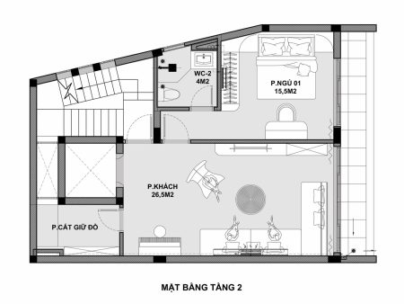 Mặt bằng nội thất nhà vệ sinh tầng 1