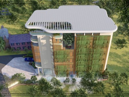 Dự án thiết kế xây dựng trọn gói Khách sạn Thanh Thủy tại Phú Thọ được thiết kế theo xu hướng kiến trúc hiện đại, chú trọng sự tinh tế, tối giản và đặc biệt đề cao yếu tố xanh – gần gũi thiên nhiên. Đây là công trình Xây dựng Thái Sơn sẽ thể hiện sự kết hợp hài hòa giữa tính thẩm mỹ và công năng sử dụng, mang lại trải nghiệm sang trọng nhưng vẫn thoải mái cho du khách.
