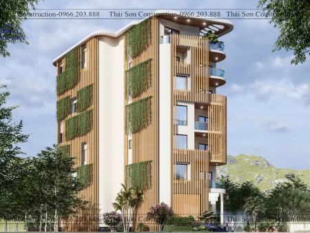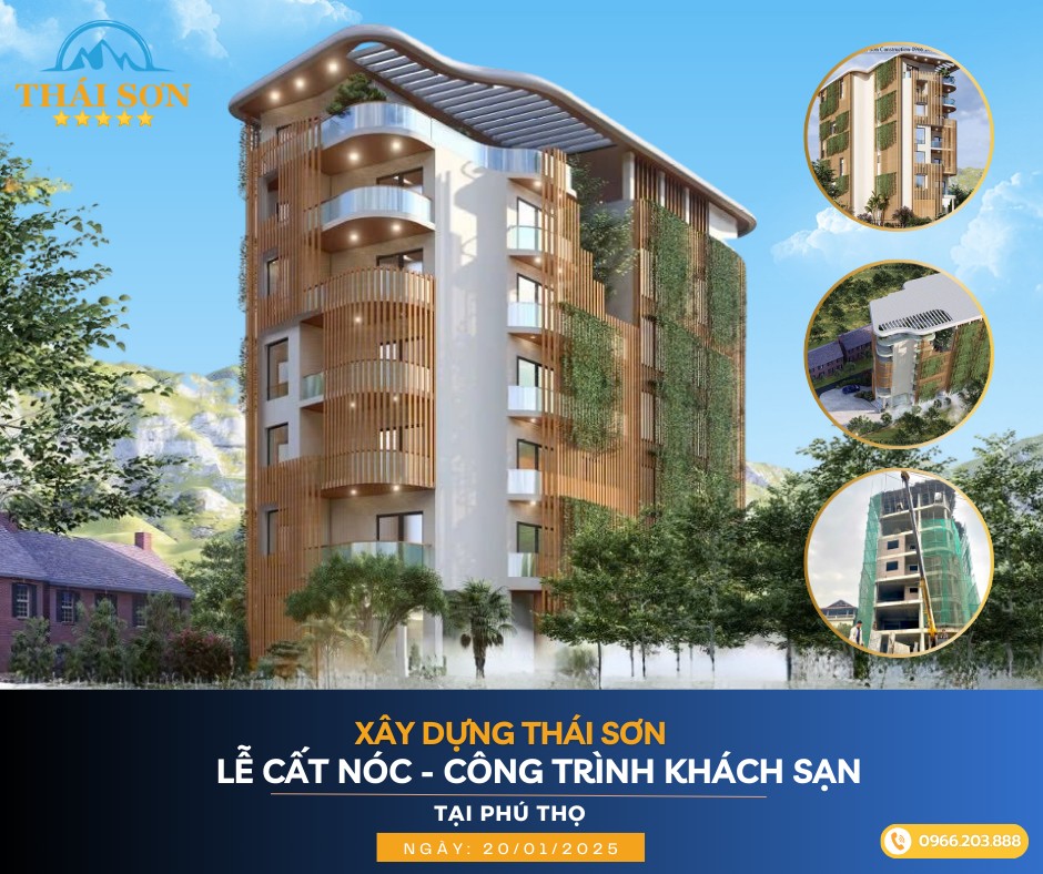 Công trình khách sạn hiện đại này là minh chứng cho xu hướng thiết kế thông minh, bền vững, vừa thẩm mỹ, vừa thân thiện với môi trường. Đây chắc chắn sẽ là điểm đến lý tưởng, tạo dấu ấn khác biệt và nâng tầm giá trị cho chủ đầu tư. Hiện tại công trình đang được đội ngũ kỹ sư có bề dày kinh nghiệm triển khai và dần hoàn thiện, chúng tôi sẽ liên tục cập nhật tiến độ công trình trong thời gian tới. Xây dựng Thái Sơn – Tổng thầu xây dựng uy tín – Xây dựng trọn gói Khách sạn, văn phòng, biệt thự, lâu đài, nhà ở dân dụng, nhà phố hiện đại.