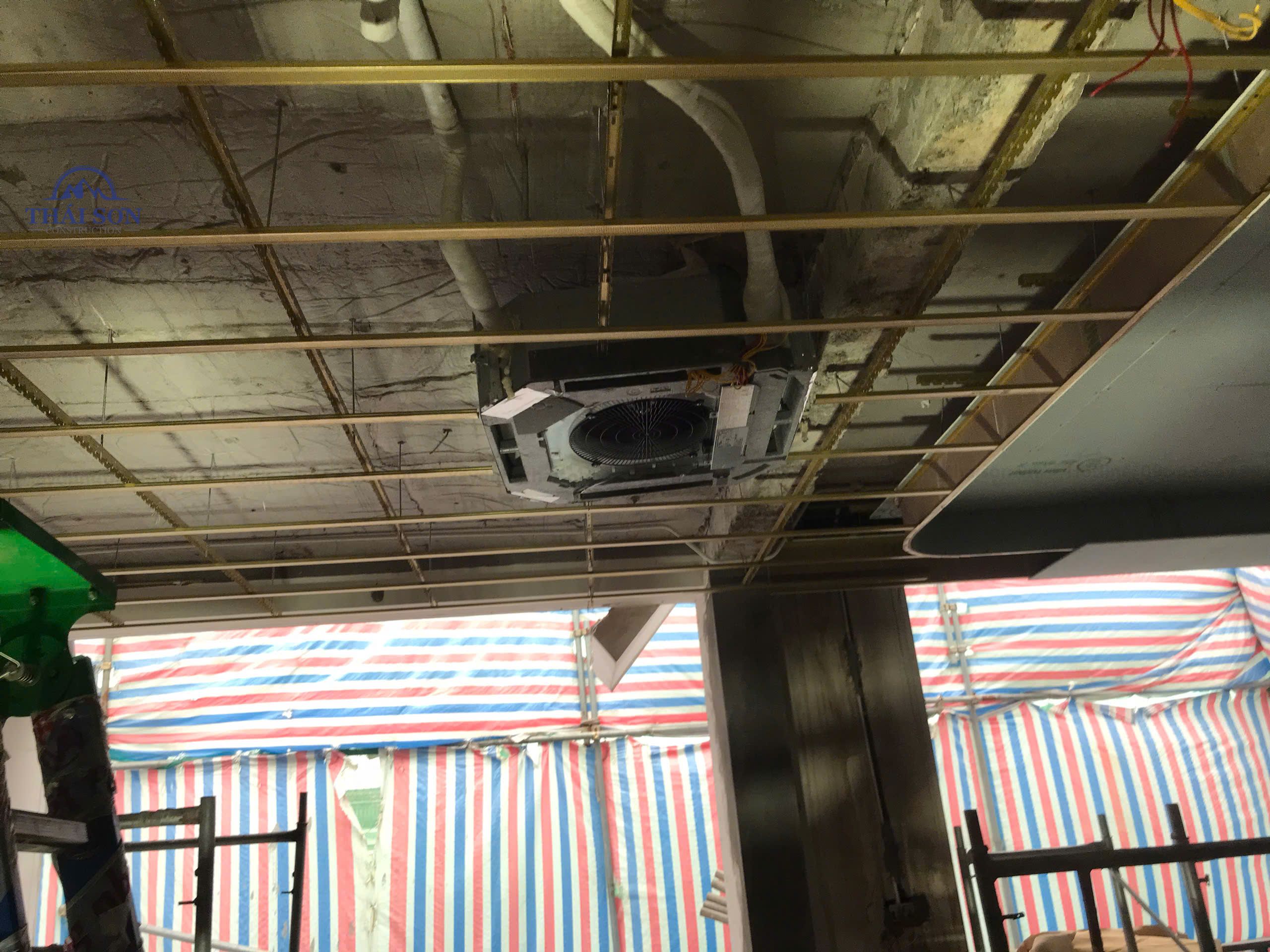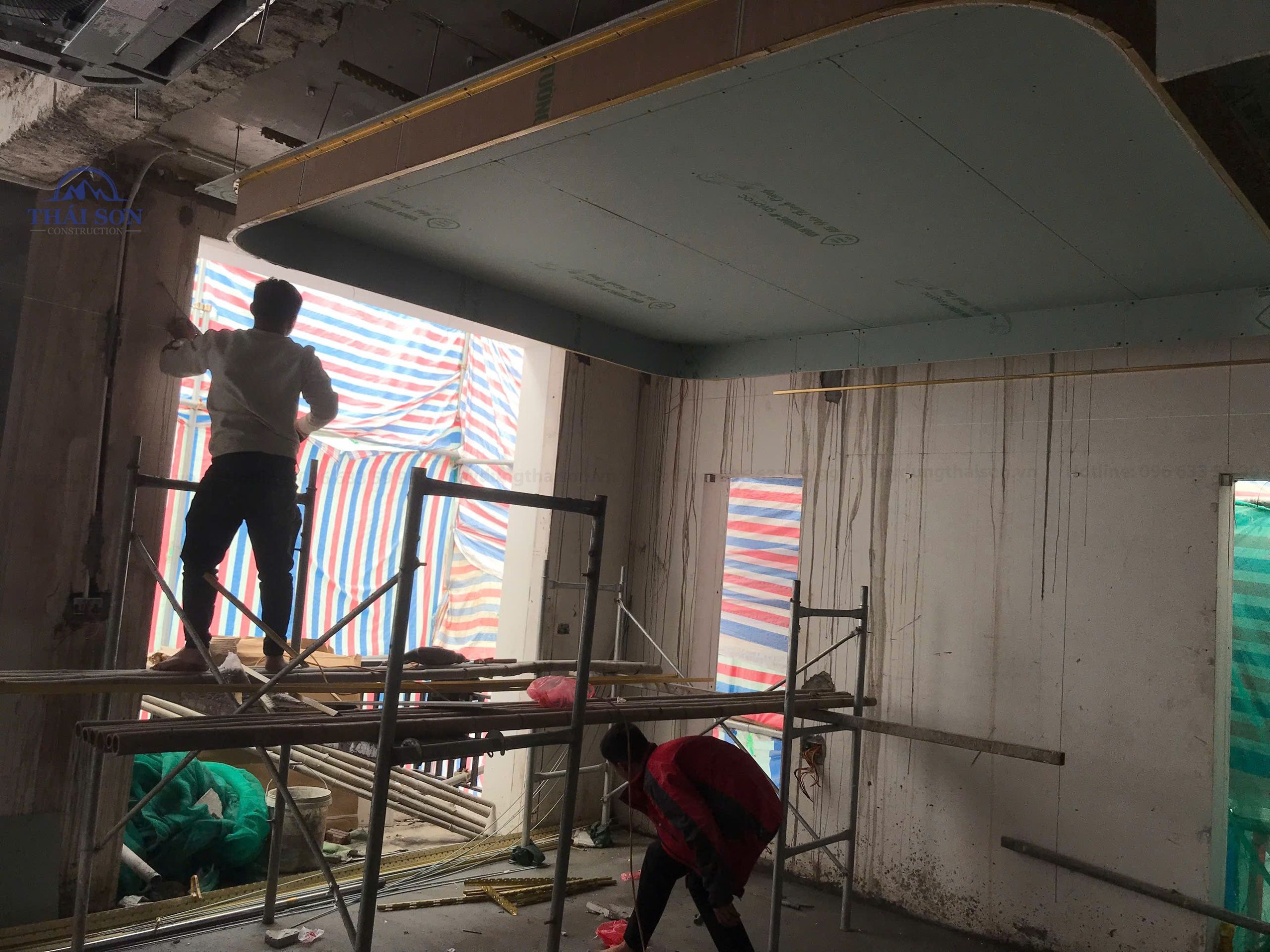 Đội thi công THÁI SƠN tiến hành lắp dựng khung xương thạch cao đảm bảo đúng kỹ thuật và cao độ thiết kế. Khung xương: