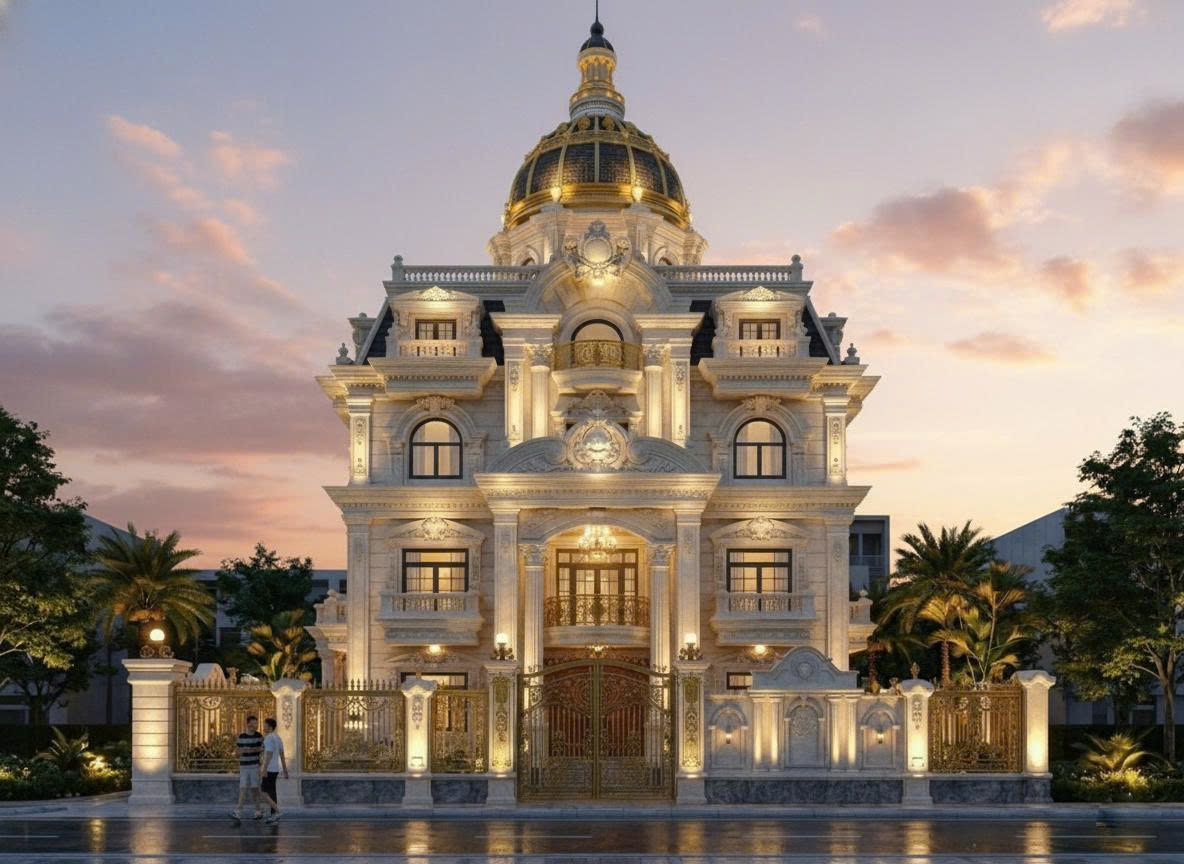 Tòa lâu đài như bước ra từ trời Âu, mang theo khí chất thượng lưu, nét kiêu hãnh vương giả và sự hoàn mỹ chuẩn mực của kiến trúc cổ điển hoàng gia. Đây là công trình mà Xây dựng Thái Sơn đã dành trọn tâm huyết – từ đường gờ phào nhỏ nhất cho đến từng mảng khối lớn – để tạo nên một biểu tượng kiêu hãnh mà bất kỳ ai nhìn thấy cũng đều trầm trồ.