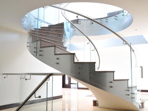 Cầu thang xoắn kính – inox: Mang nét hiện đại, sang trọng, phù hợp nhà phố, biệt thự cao cấp.