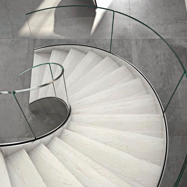 Mẫu cầu thang xoắn trong nhà bằng kính, sắt, inox đẹp nhất 2025