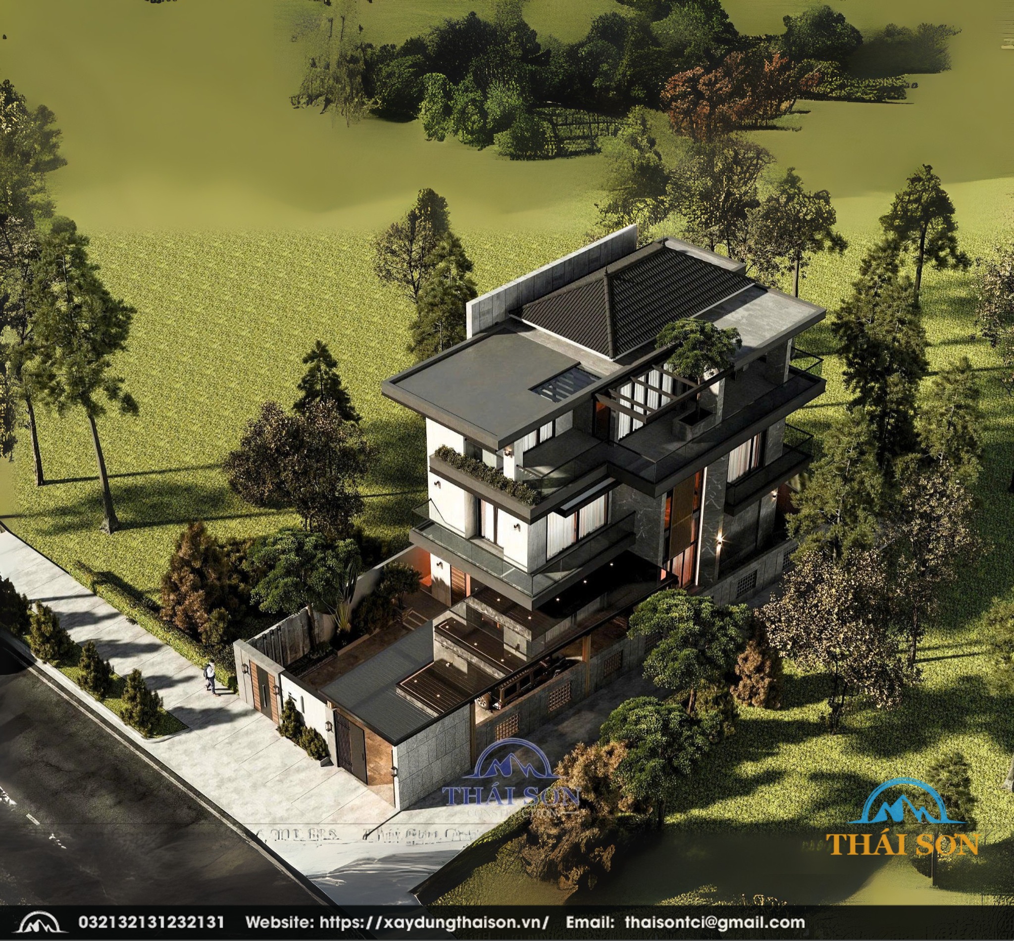 Đây là mẫu biệt thự hiện đại cao cấp, phù hợp với gia chủ yêu thích sự tinh tế, tiện nghi và không gian mở. Sự kết hợp giữa vật liệu hiện đại (kính, đá, thép) và yếu tố thiên nhiên (cây xanh, ban công thoáng) mang lại phong cách sống sang trọng nhưng vẫn gần gũi, thư thái. Thái Sơn tự hào được đồng hành cùng khách hàng từ những ý tưởng sơ khai tới lúc bàn giao sản phẩm, sự hài lòng của khách hàng là động lực để chúng tôi thực hiện những sản phẩm tuyệt vời và đẳng cấp tiếp theo.