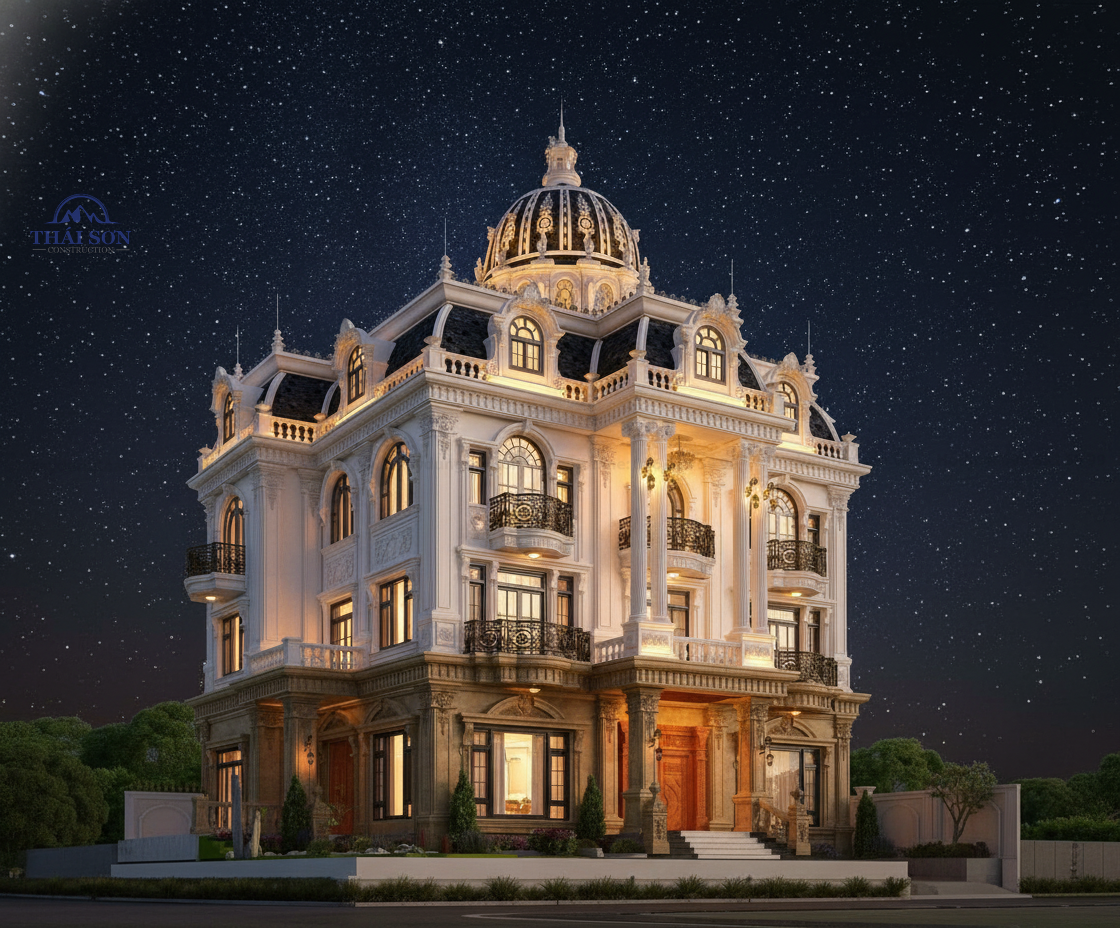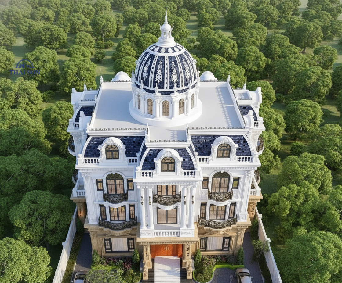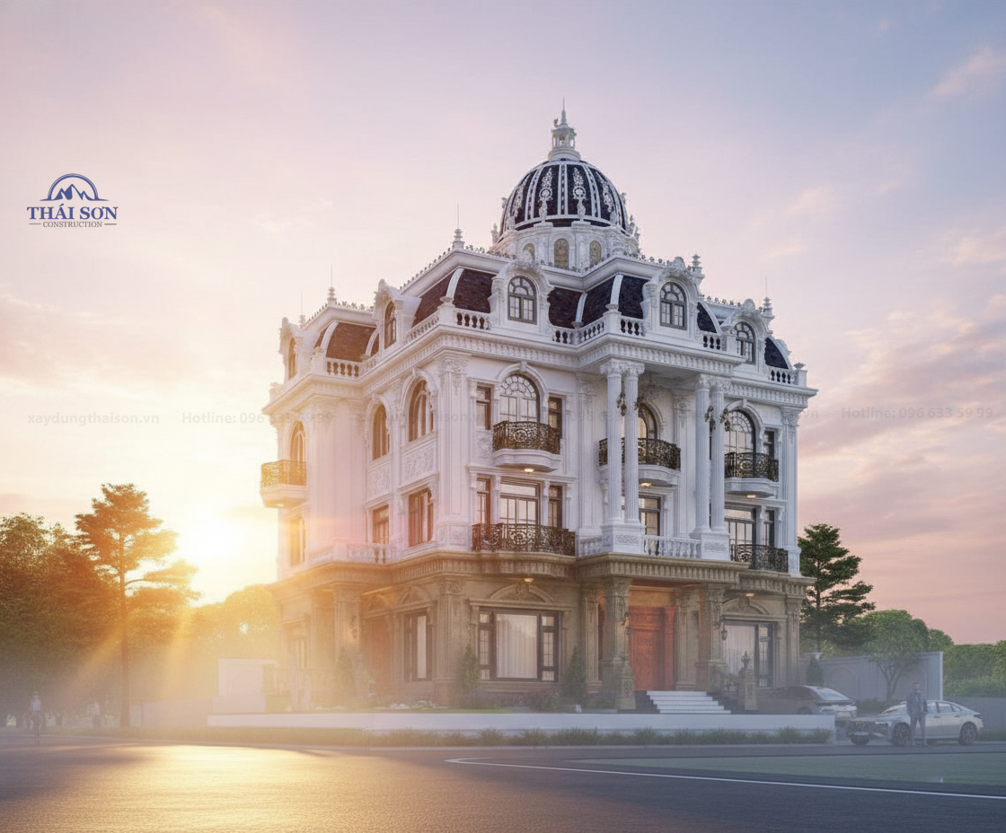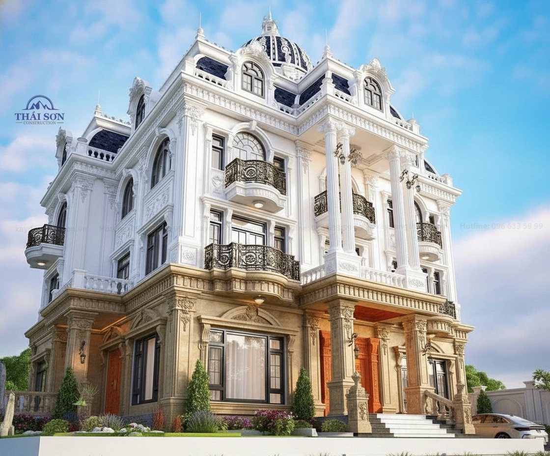Siêu biệt thự tân cổ điển 3 tầng 1 mái 1 tum mái vòm phong cách hoàng gia kiệt tác siêu kiến trúc đến từ các kiến trúc sư Tổng thầu xây dựng Thái Sơn. Biệt thự tân cổ điển luôn là biểu tượng của sự sang trọng vượt thời gian. Nhưng khi thiết kế được đẩy lên một đẳng cấp cao hơn như thiết kế này – hòa quyện giữa tinh hoa kiến trúc châu Âu cổ điển, kỹ thuật hiện đại và ngôn ngữ thẩm mỹ đương đại – chúng ta có được một siêu biệt thự tân cổ điển đúng nghĩa, một công trình mang giá trị nghệ thuật trường tồn.