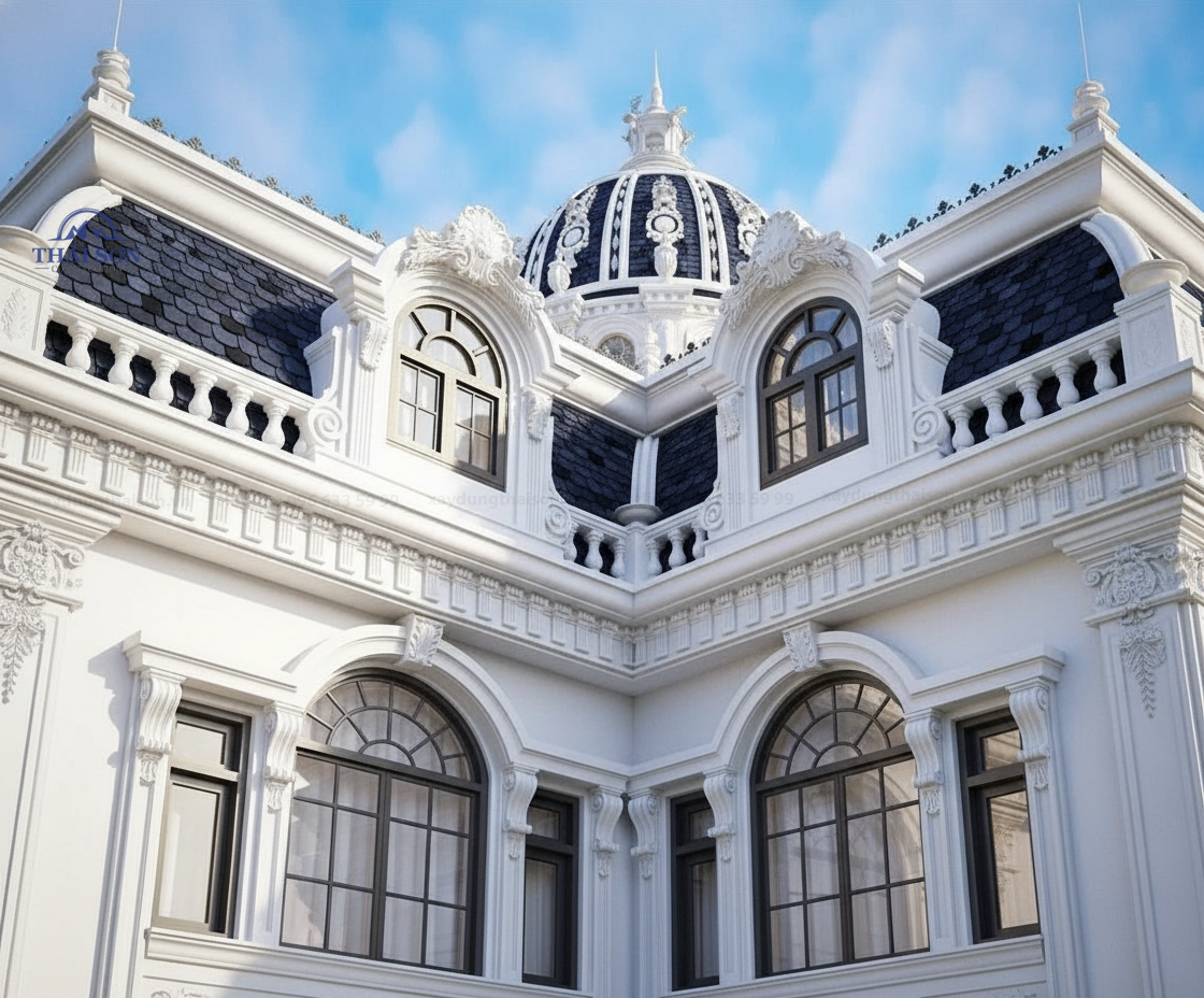 Siêu biệt thự tân cổ điển 3 tầng 1 mái 1 tum mái vòm hoàng gia