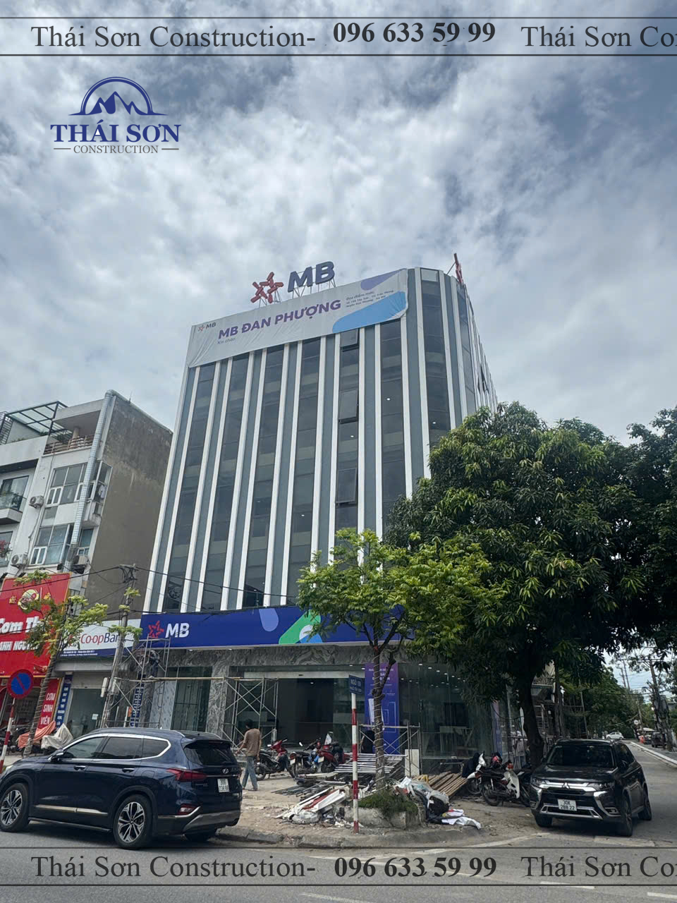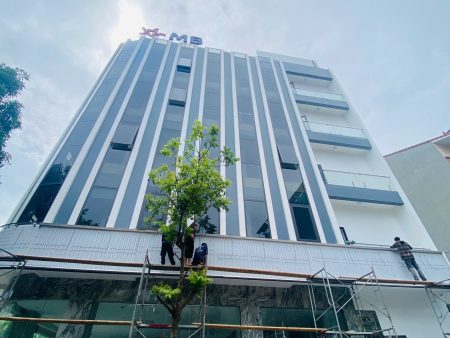 Thi công tòa nhà văn phòng MB Bank Đan Phượng – Xây Dựng Thái Sơn tự hào là đơn vị thực hiện trọn gói công trình với kiến trúc hiện đại, mặt dựng kính sang trọng và kết cấu vững chắc. Công trình không chỉ đáp ứng tiêu chuẩn thẩm mỹ, công năng sử dụng mà còn khẳng định uy tín, thương hiệu của ngân hàng trong mắt khách hàng và đối tác.Thái Sơn vinh dự là Tổng thầu xây dựng của siêu dự án xây dựng tòa nhà văn phòng này.