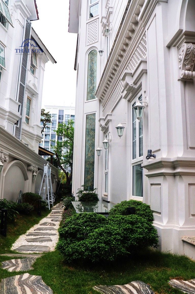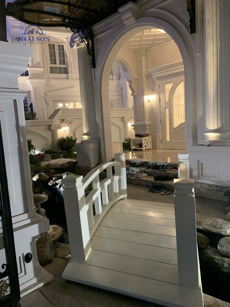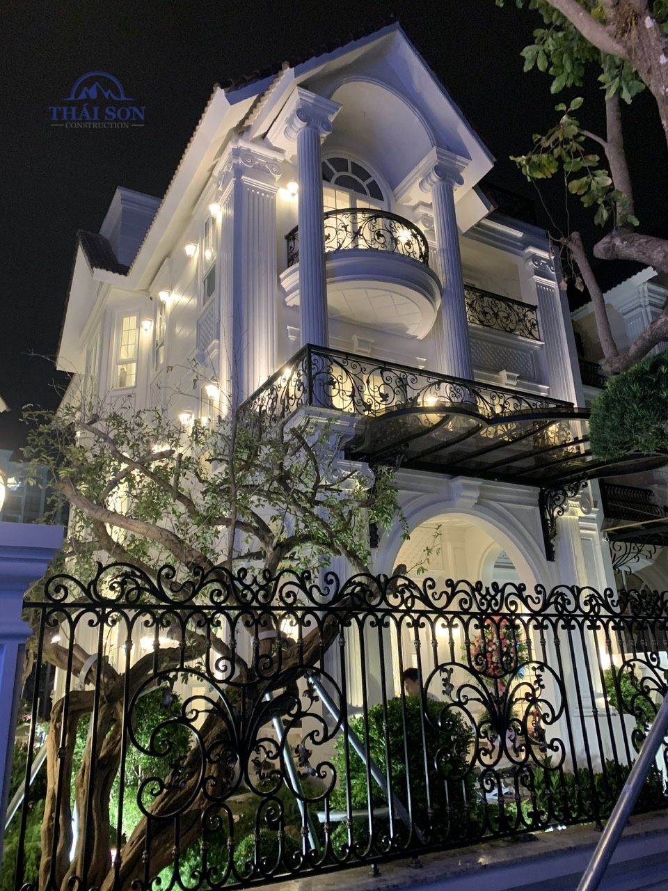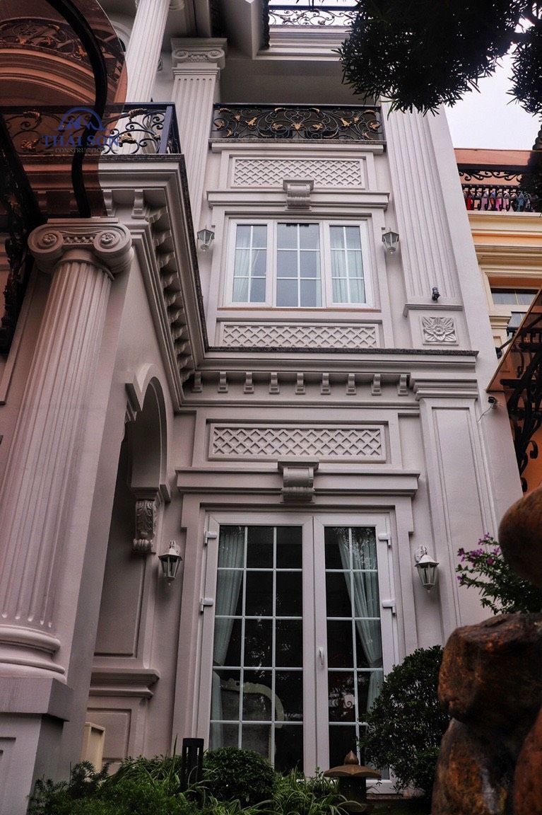 Thi công biệt thự tân cổ Hoa Lan 11 nằm trong quần thể Vinhomes Riverside Long Biên được Thái Sơn thực hiện năm 2021. Kiểu kiến trúc mà gia chủ lựa chọn mang đậm kiến trúc cổ điển với những chi tiết phào chỉ rõ nét kèm cột trụ đứng ở mặt tiền. Những họa tiết hoa văn cầu kỳ đã mang lại cho căn biệt thự một giao diện hoàn toàn mới đậm phong cách cá tính của gia chủ.