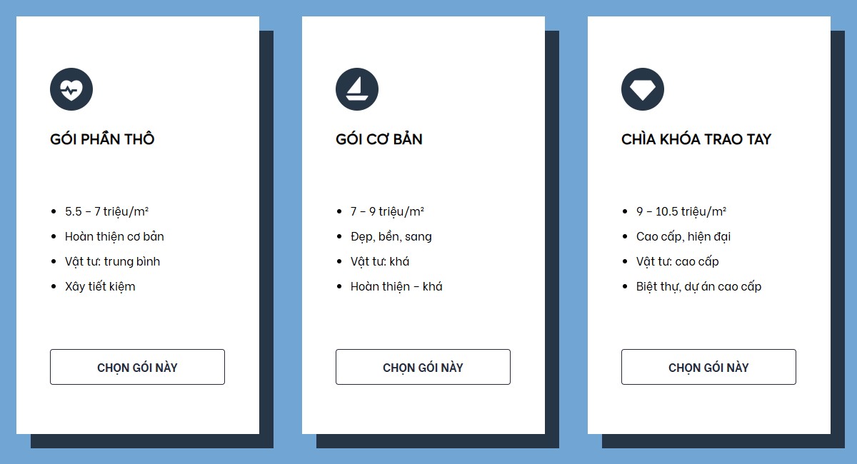 Giá là giá của một mét vuông, mỗi công trình có vị trí, mặt bằng, phong cách kiến trúc và mức vật liệu khác nhau.